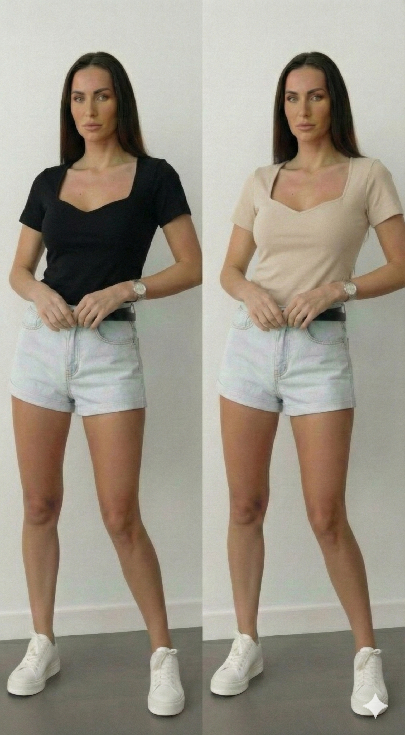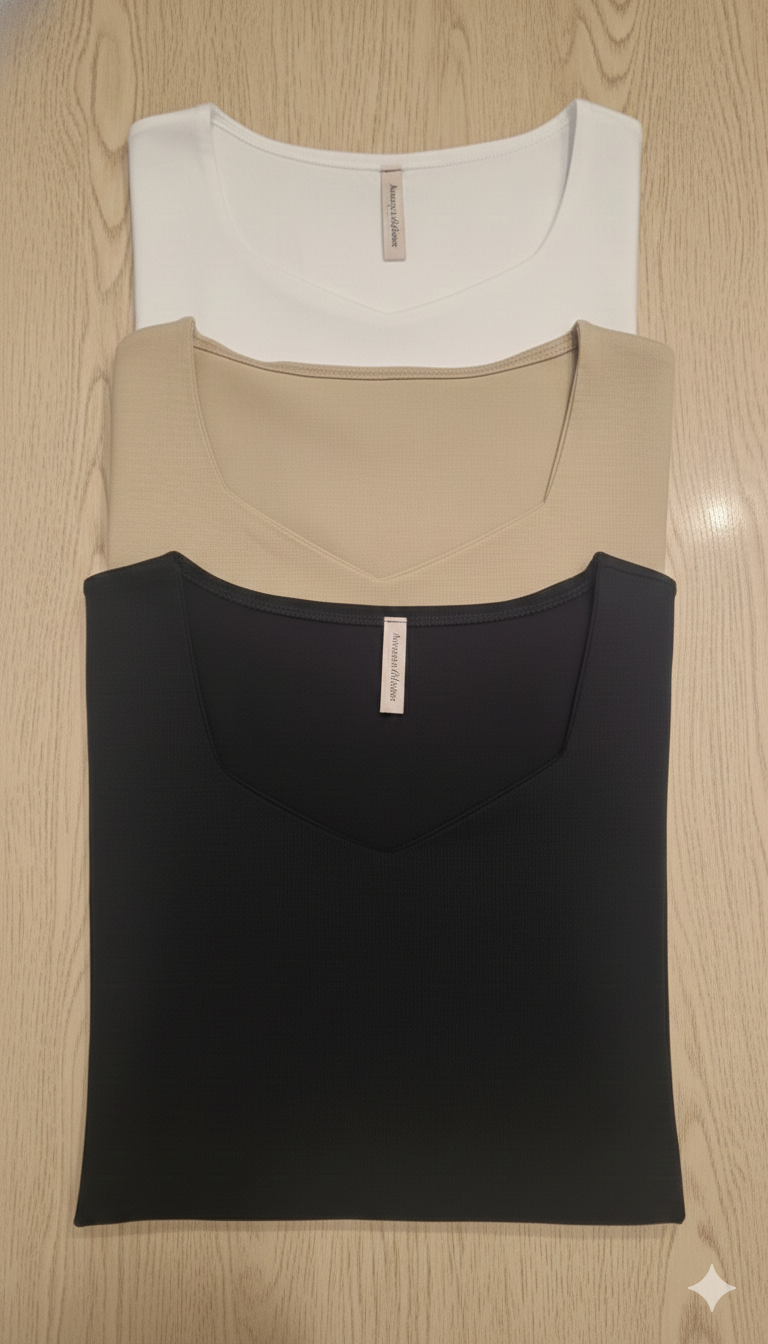 El cuello escote corazón realza el escote, alarga visualmente el cuello y hace que incluso un outfit simple se vea más armado.