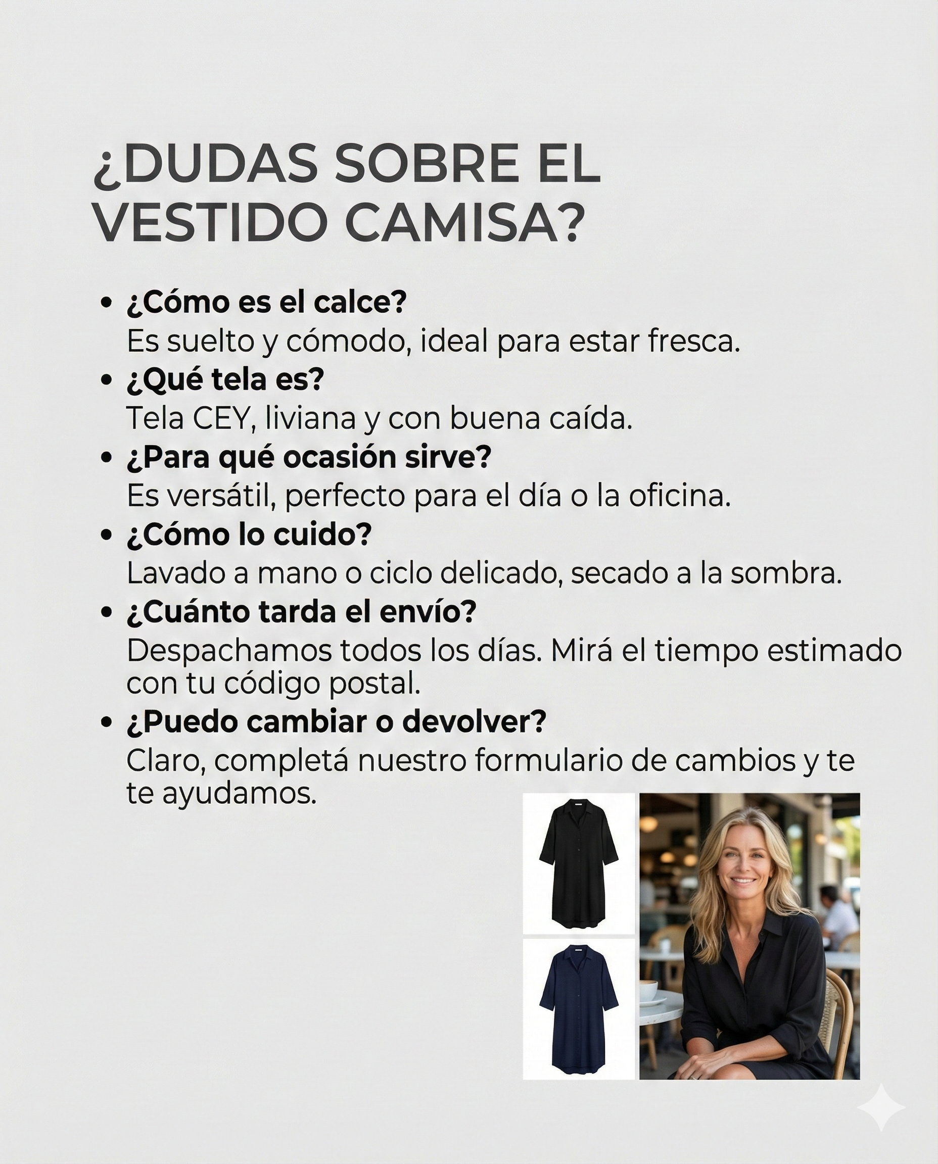 ¿Querés un vestido que sea tan cómodo como tu pijama, pero que te haga ver divina para cualquier ocasión? El Vestido Camisa CEY BT es la respuesta a tus plegarias fashionistas. Ya sea para un día de trabajo, una salida con amigas o simplemente para sentirte espectacular, esta prenda es tu mejor aliada.